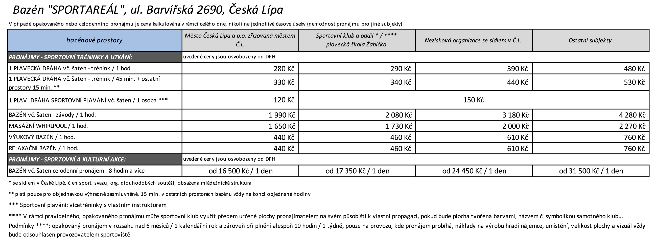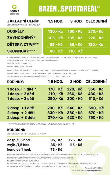 platba HOTOVĚ, BANKOVNÍ PLATEBNÍ KARTOU: na recepci bazénu v 1. patře areálu