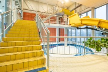 Plavecký bazén je jedno z našich největších sportovišť. Vyžití zde najdou nejen sportovci, ale také rodiny s dětmi. Navštívit můžete relax zónu s vířivkou, hydromasážní sedačky, masážní chrliče. Mezi další atrakce patří skluzavka, tobogán a divoká řeka. K relaxu také slouží parní sauny umístěny v prostorách sprch.