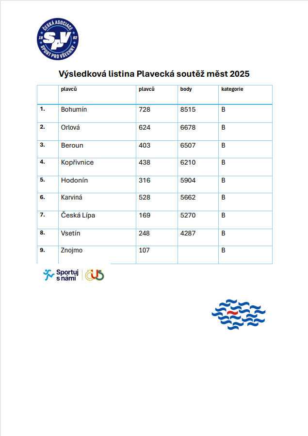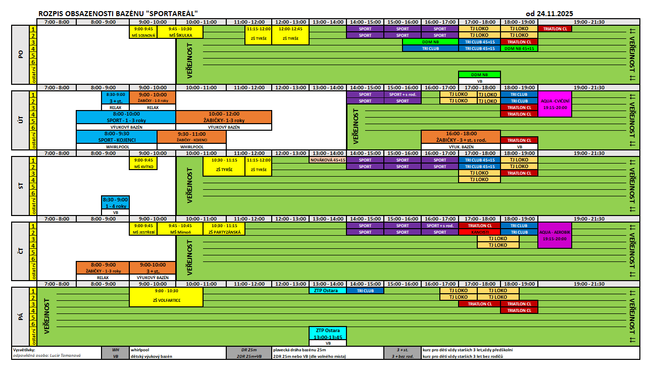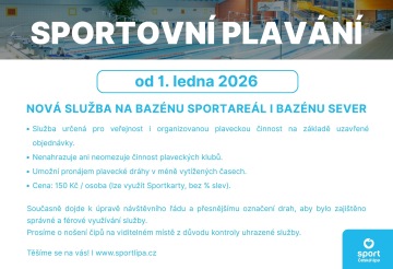 Zápis bude probíhat od pondělí 1.9.2025 do čtvrtka 4.9.2025 na recepci plaveckého pazénu ve Sportareálu od 13:00 do 16:00