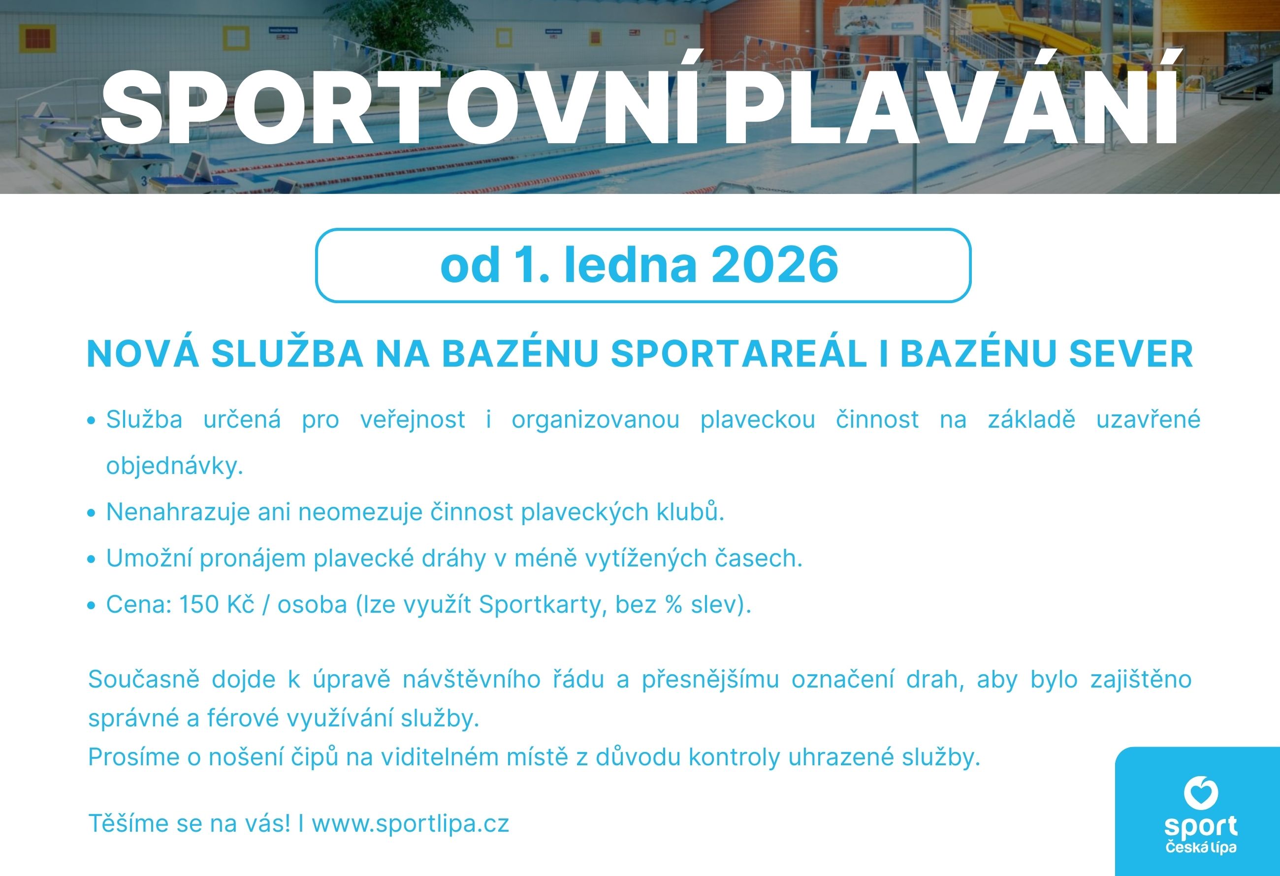 Zápis bude probíhat zápisem do knihy na recepci bazénu do 31.8.2025