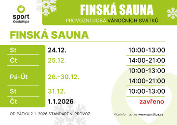 Finská sauna ve Sportareálu nabízí klasickou suchou saunu s teplotou devadesát až sto stupňů Celsia.