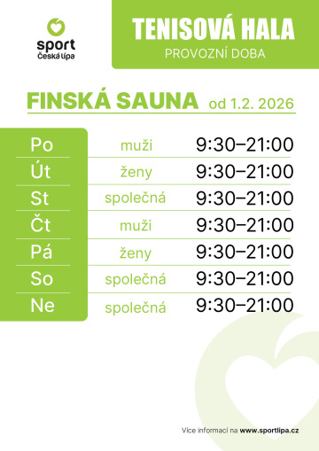 Finská sauna se naléza v prostorech Tenisové haly.