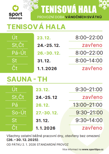 Sportoviště Tenisová hala se nachází nedaleko kulturního domu Crystal na břehu řeky Ploučnice ve sportovním areálu Městského stadionu. Ke třem vnitřním kurtům Tenisové haly patří také osm venkovních antukových kurtů.