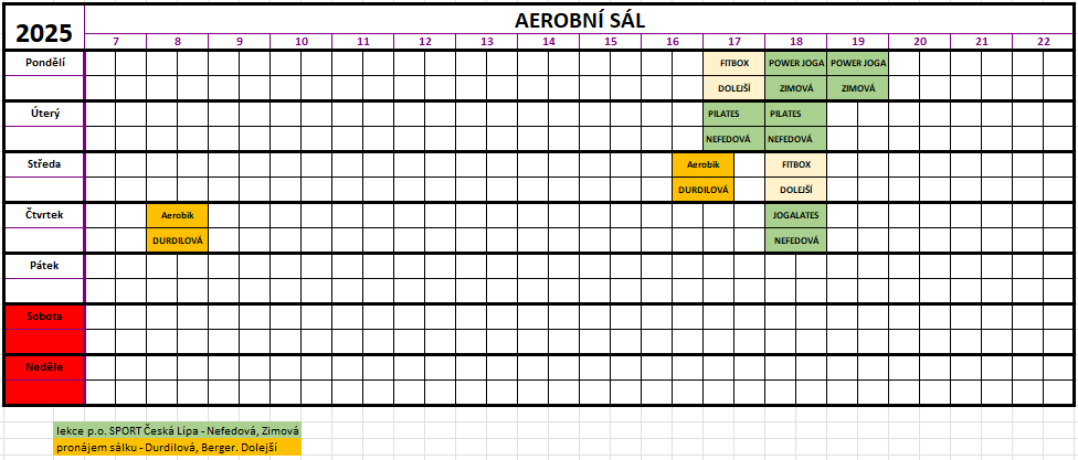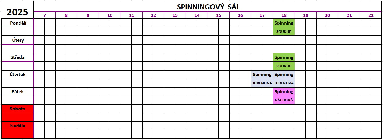 On-line rezervace aerobního sálu, spinningového sálu a lekcí