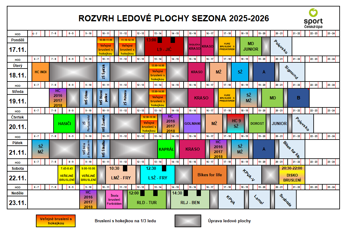 ROZPIS LEDOVÉ PLOCHY